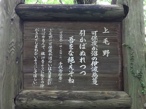 「上野毛」は東国を象徴する地名。群馬県。 「いわいづら」は群生する水草。 階段道をのぼったところにありました。 |