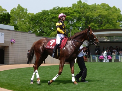 パドックではいつもどおり、ドリームセーリングに石神騎手が跨がると周回しないでサクっと本馬場へ向かいます。