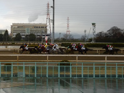 地方競馬のダートはスタンドから近いので迫力あります。