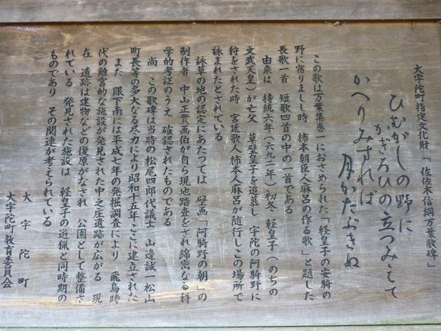 | 場所 | 宇陀市大宇陀町迫間・かぎろひの丘 (揮毫者・佐々木信綱) |