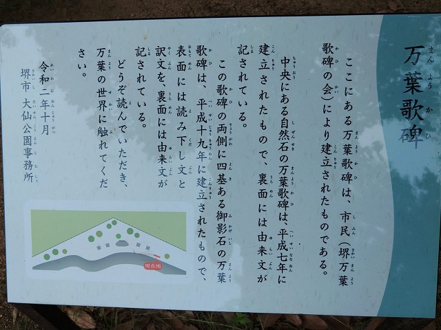 | 場所 | 大阪府堺市堺区大仙町・大仙公園西側遊歩道 (揮毫者・犬養孝) |