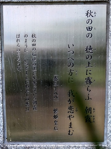 秋の田の 穂の上(へ)に霧(き)らふ 朝霞(あさかすみ) 何処(いつ)辺(へ)の方(かた)に 我が恋やまむ |