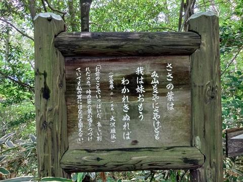 | 柿本朝臣人麿の石見國より別れて上り来し時の短歌 小竹(ささ)の葉は み山もさやに 乱(さや)げども われは妹思ふ 別れ来ぬれば |