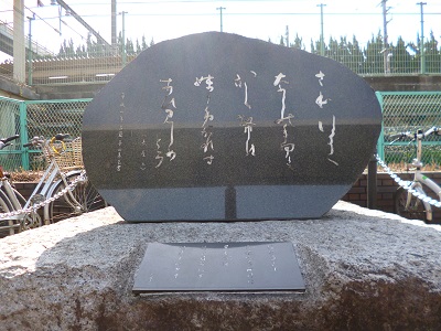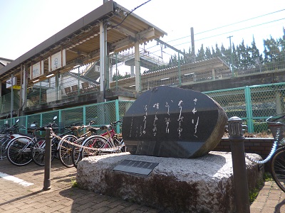 この歌碑はJR平城山(ならやま)駅前にありますが、駐輪場と一体化していますので とても残念な状況です。 自転車に囲まれまくっています。 |