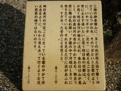 | 場所 | 高市郡明日香村飛鳥・飛鳥寺境内(揮毫者・佐々木信綱) |