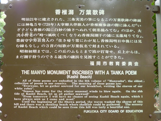 香椎潟、昭和の初めまではまだ香椎宮のあたりから海が見えたそうです。 今は埋め立てられてしまっていて、万葉の風景が消えてしまっています。 |
