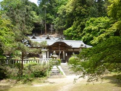 穴師坐兵主神社は、相撲神社からさらに奥深い森の中へ登ったところにあります。 三ツ屋根造りの寝殿に三社が合祀されています。 |