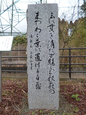 薩摩川内市の歴史資料館の裏手の川筋に15基の万葉歌碑が建っており、そのうちのひとつです。 万葉集には萩を詠んだ歌が非常に多く、142首登場します。 |