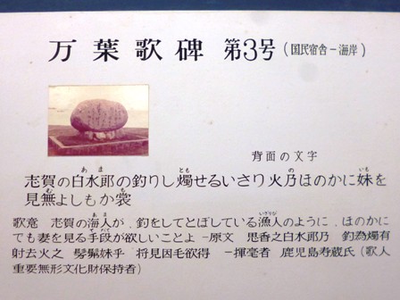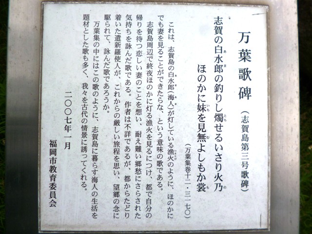 | 場所 | 福岡県福岡市東区志賀島・志賀島小学校の向かいの海岸にある歌碑公園 (揮毫者・鹿児島寿蔵・歌人) |