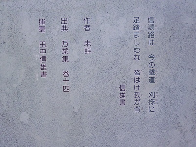 | 場所 | 長野県千曲市上山田・千曲川萬葉公園南側 (揮毫者・田中信雄) |