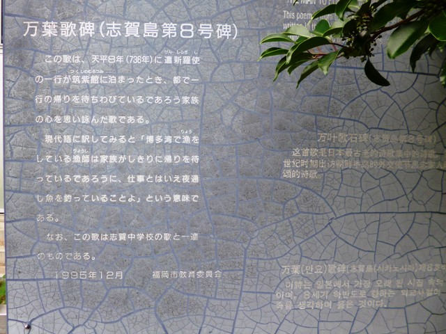 | 場所 | 福岡県福岡市東区志賀島・志賀島小学校 (揮毫者・干潟龍祥・九州大学名誉教授) |