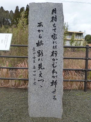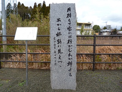薩摩川内市の歴史資料館の裏手の川筋に15基の万葉歌碑が建っており、そのうちのひとつです。 |