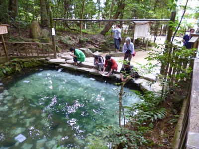 八俣の大蛇を退治して櫛名田姫を得た素戔嗚尊は、新婚の宮を造るべき土地を求めて出雲の国をさすらった。 須賀の地に至ったとき、「ここに来て我が心は清々しくなった」と言って、そこに宮を造ることにした。 故に、その地をいま須賀というのである。 須賀の宮を造り始めたとき、雲がたちのぼった。そうしてよんだのがこの歌であるといわれています。 日本で最初の和歌だともいわれています。 |