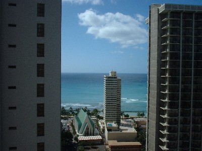 いちおうホテルの間からみえるのはワイキキビーチや。