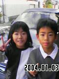 こうすけくん、みほちゃん、よく頑張りました。ゴール地点にて。