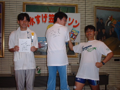 表彰台にて。しーちゃん舞い上がりまくり。尾上隊員は表情にひと工夫ほしいところ。