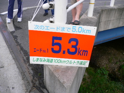5時41分、5.3kmエイド到着、まだ福山市内です。楽勝楽勝。