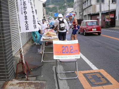 7時33分、20.2kmエイド。ついに尾道にはいる。
