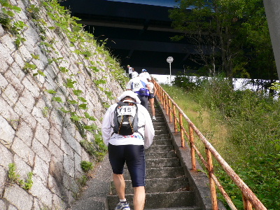 …と、橋の上をたくさんのランナーがありんこみたいになって進んでいます。