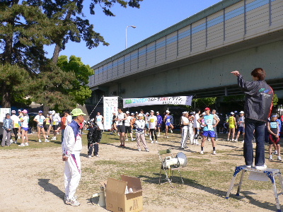 1 1周回10kmの武庫川河川敷コースを7周回します。