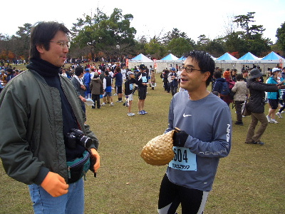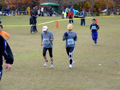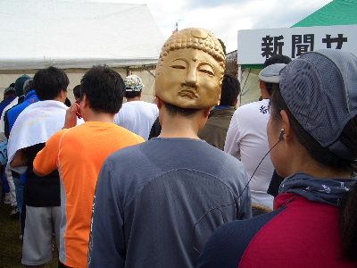 最初は、スタート直後とゴール前だけ「大仏マスク」をかぶる予定だったのですが、