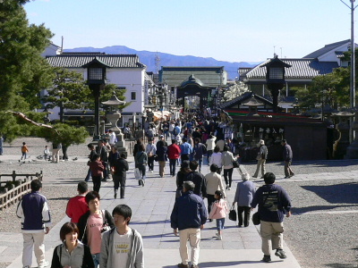 今回の遠征の目当ての一つだった善光寺は駅からみて