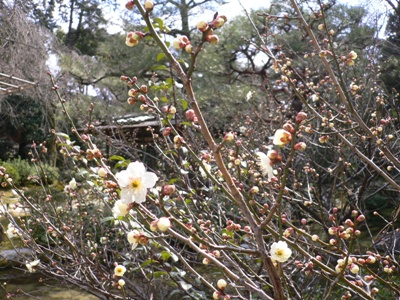 梅がすこし咲いていた程度。でも、それが奥ゆかしくていいかんじでした。