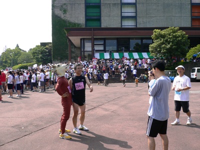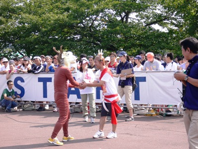 せんとくんと握手。スタート前のイベントの中で。