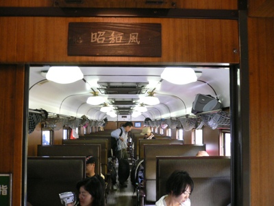 自分らが乗ったのは3号車で、昭和風仕立ての客車でした。