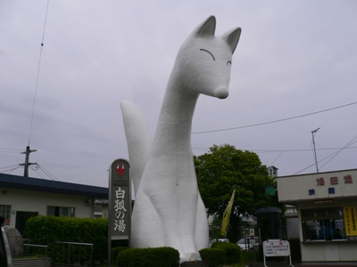 湯田温泉につくと駅前にめちゃめちゃおっきな白狐がいてお迎えしてくれました。