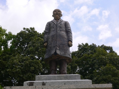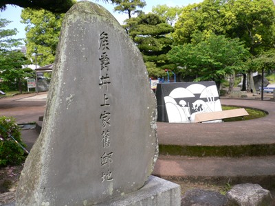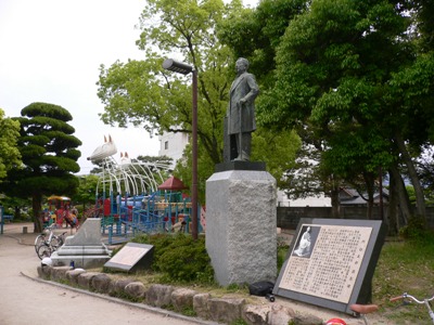 同じく高田公園の井上馨像。白狐の遊具が素敵です。