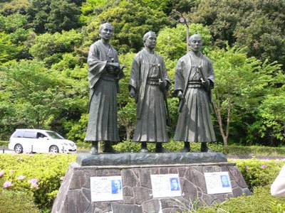 萩城跡・石彫公園へもどって大会の搬送バスにのって