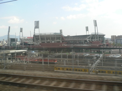 マツダスタジアムが新幹線からよく見えた。わたしセ・リーグはこの球場だけ未制覇。