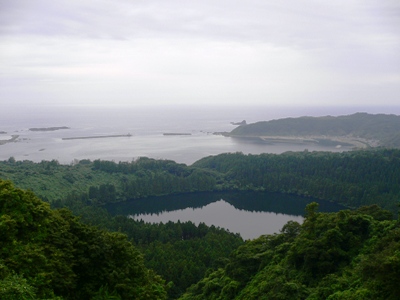 旅館へ移動途中、火山湖(マール)を八望台から見ました。写真は二ノ目潟。