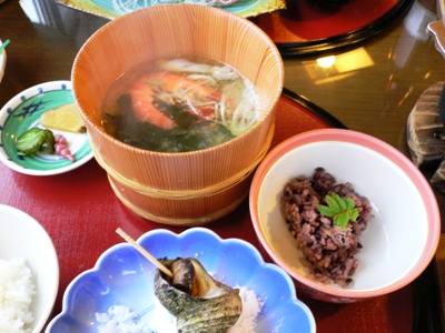 お昼に入道崎で大感激した石焼き鍋ですが、ここでも出てきました。
