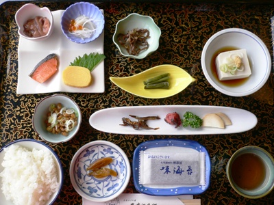 伝統的日本の朝ご飯。ごはんとみそ汁がめちゃおいしかった。