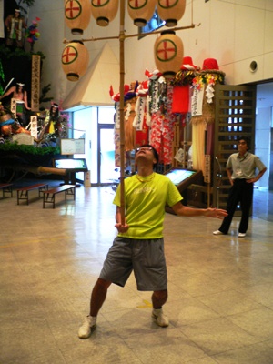 ちょっと小型の竿燈。肩にのせてもらってます。