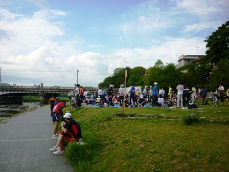 受付風景。おこしやすマラソンでおなじみの加茂大橋付近(8:10)