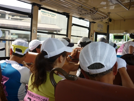 移動風景。250人なので補助席も使ってぎゅうぎゅうづめでした(8:35)