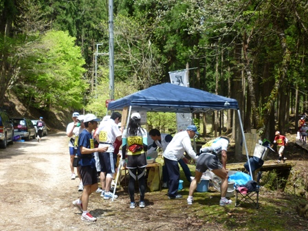 ゆるゆる走ってたおかげで最初のエイドである久多(7km地点)へは苦も無く到着しました。