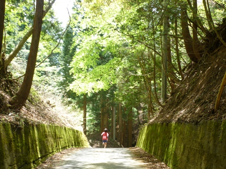 (山道コースで、後ろから来る人の道の邪魔になるのは嫌だけど、一人きりになって道に迷ってしまうのも怖いという複雑な気分でした)
