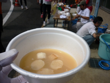 29.5km地点です。関門閉鎖は16:10。田舎みそ仕立ての味噌汁(冷)がおいしかった