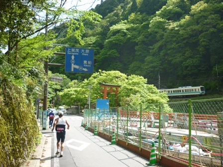 自販機でモノ買ったり、最悪制限時間関門に引っかかった時に京福電車で撤収しないといけないルールだったので。