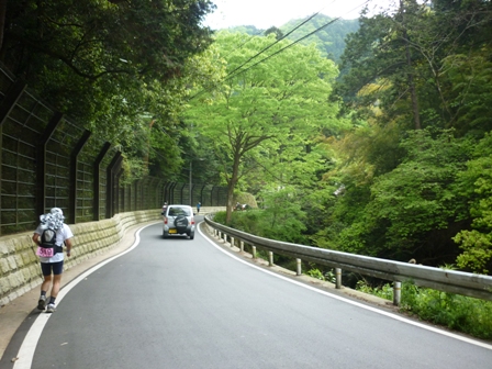 細い道、250人でスタートなのでみなさん最初は歩きです
