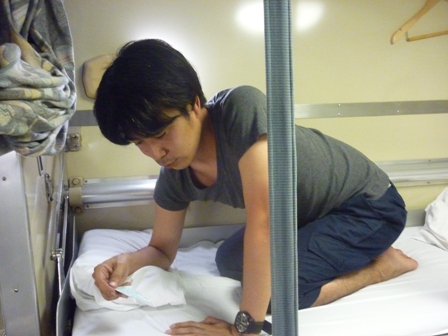 お目覚め後の辻井さん&おのっち隊員(6:45)