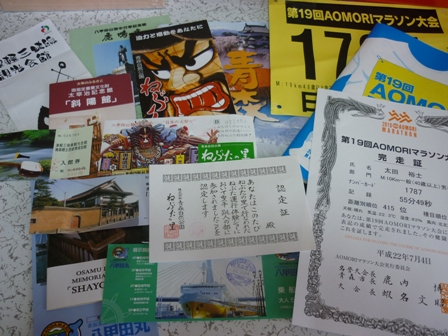 「一路青森」と書かれています。うえけん隊員の手にはすでに完走証。