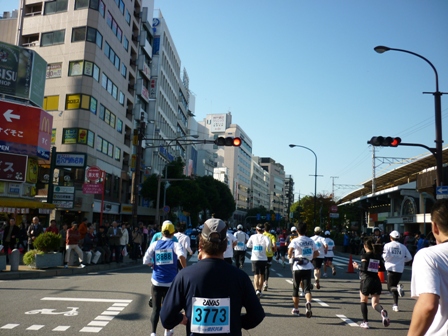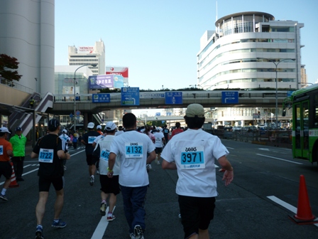3km地点の三宮交差点にさしかかるまでに10km参加の鈴木さんに抜かれました。