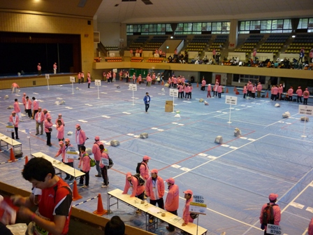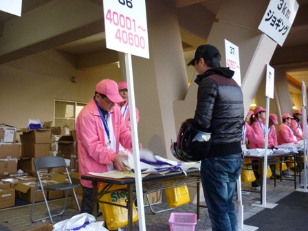 一挙に荷物預けの大群が押し寄せるのに備えて受付側のボランティアさんも大群で待ちかまえています。