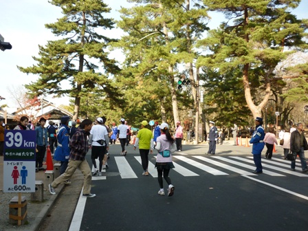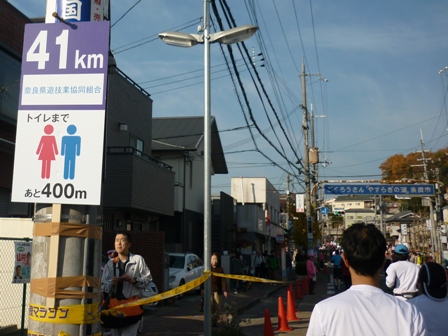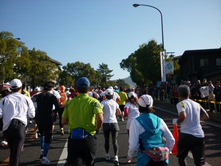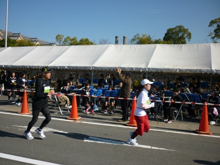 やすらぎの道にでると、往路朱雀門前(5km地点)で応援してくれてた