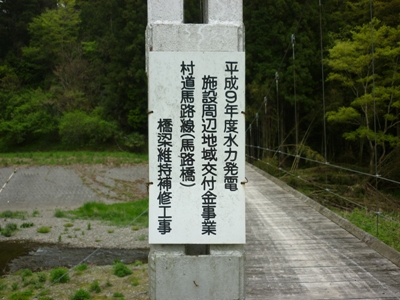 馬路橋・五條市西吉野町黒渕・橋長:50m・幅員:2m・歩道部高さ:6m